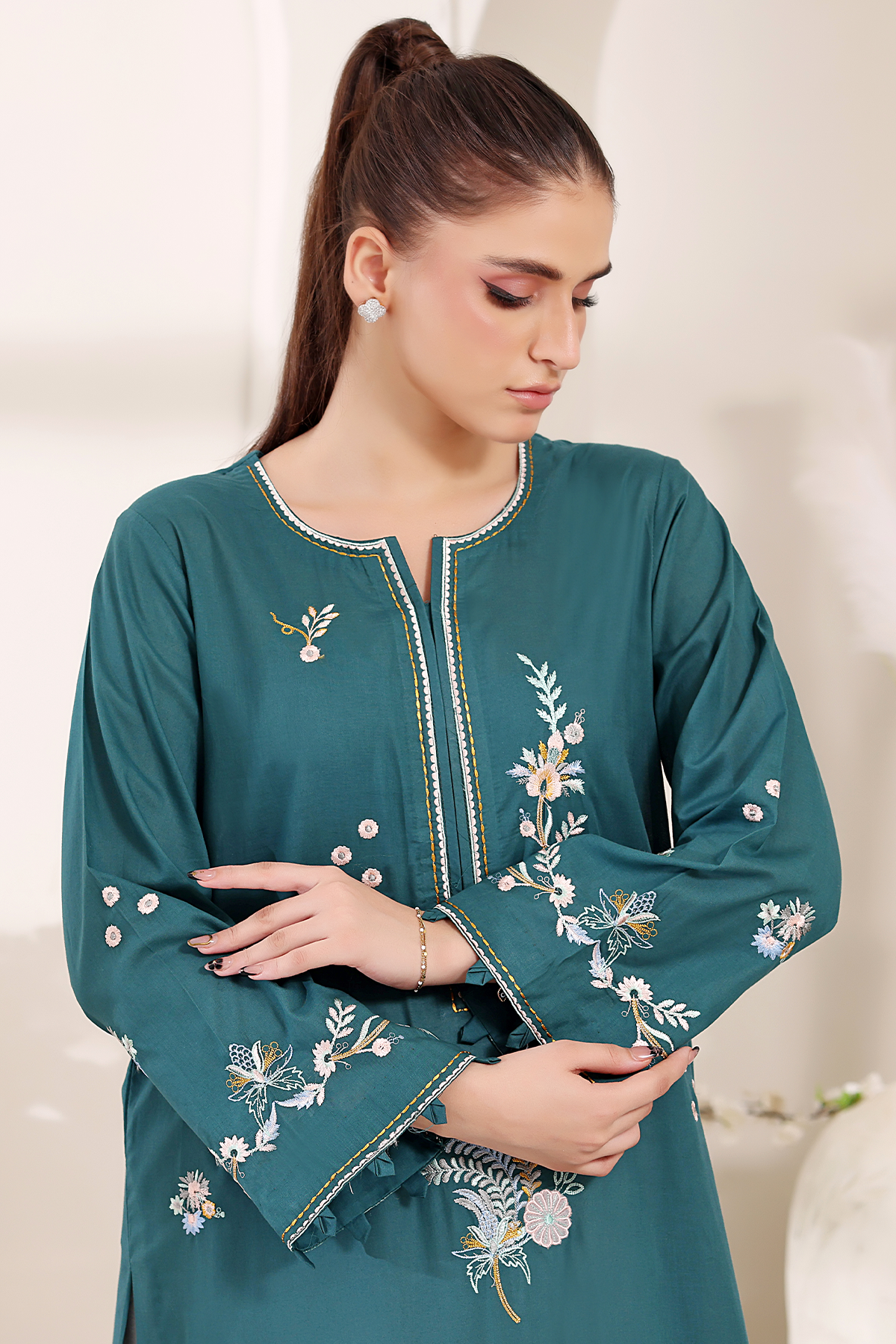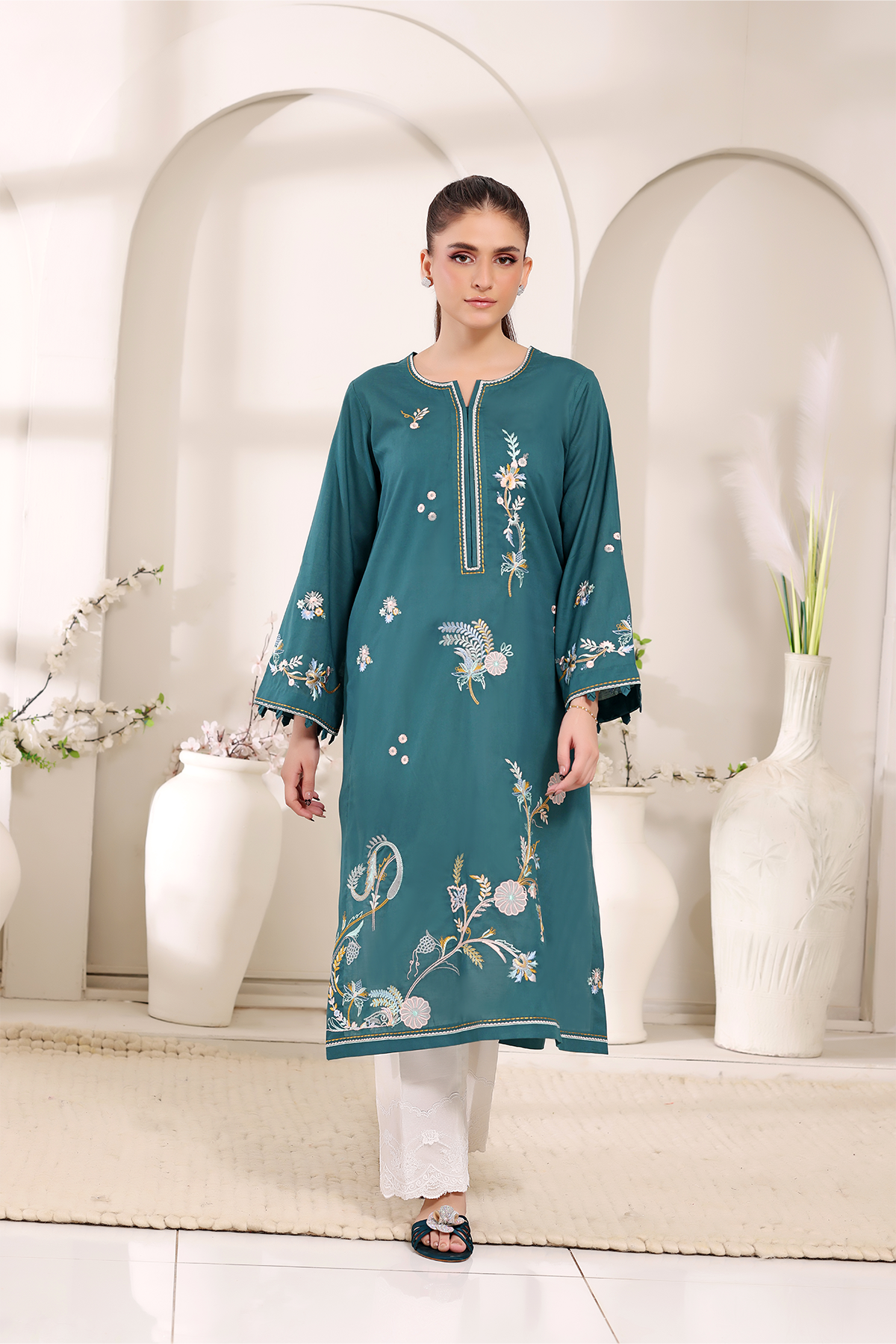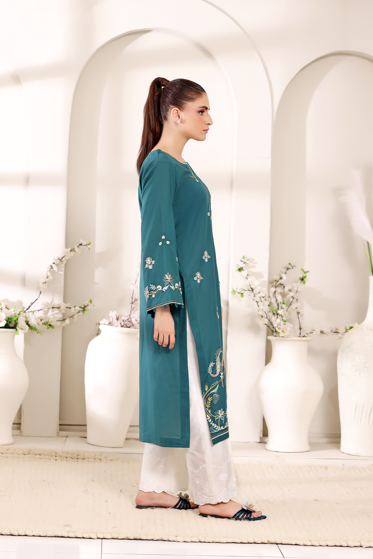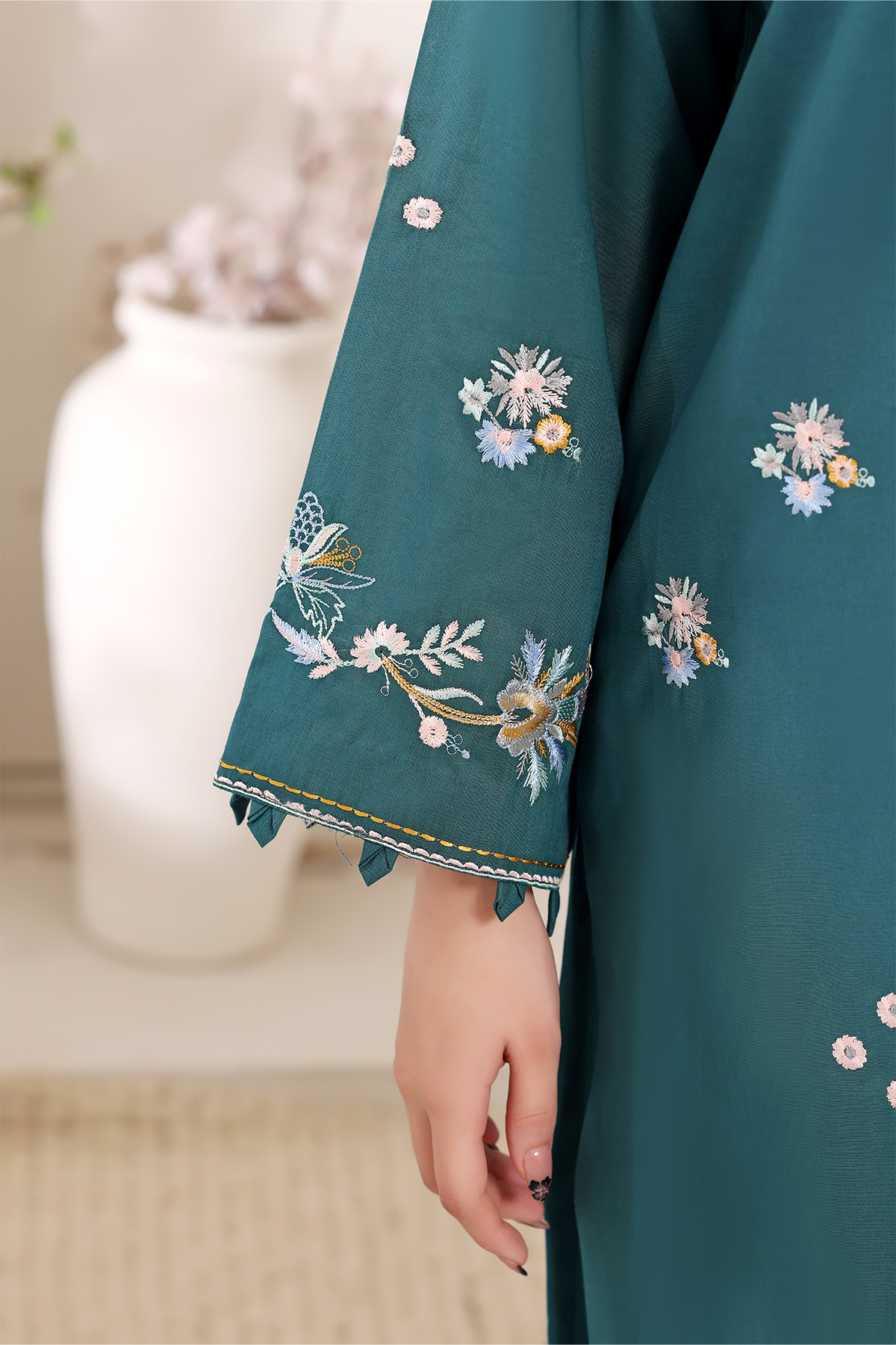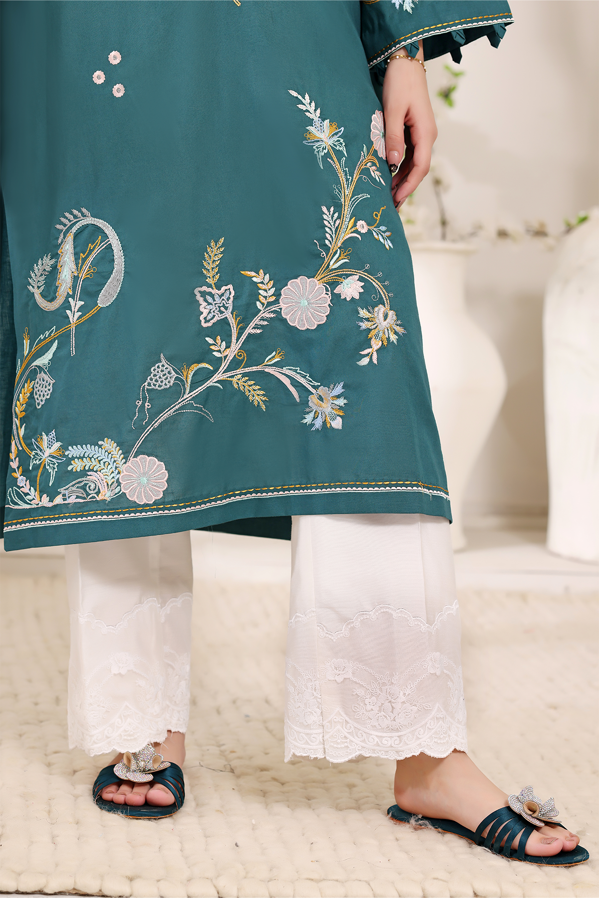Crafted on breathable lawn, Serina blends deep teal with intricate embroidery and applique accents. A design that speaks of understated sophistication, perfect for both day and evening moments.
