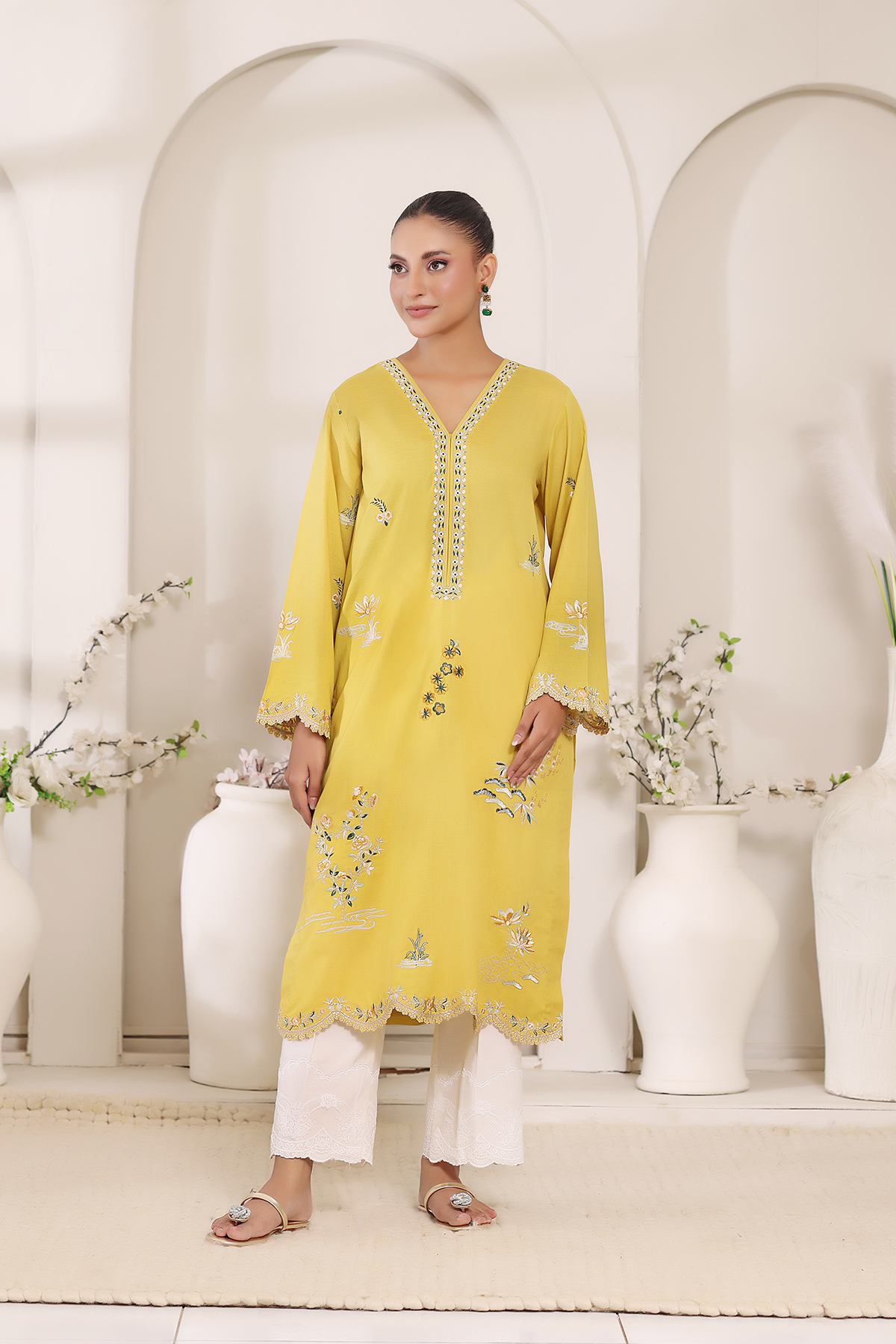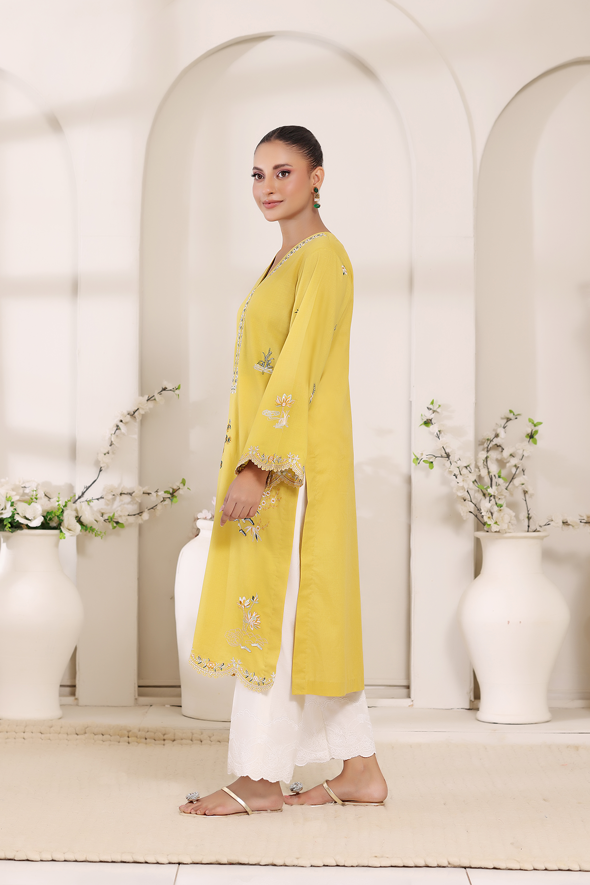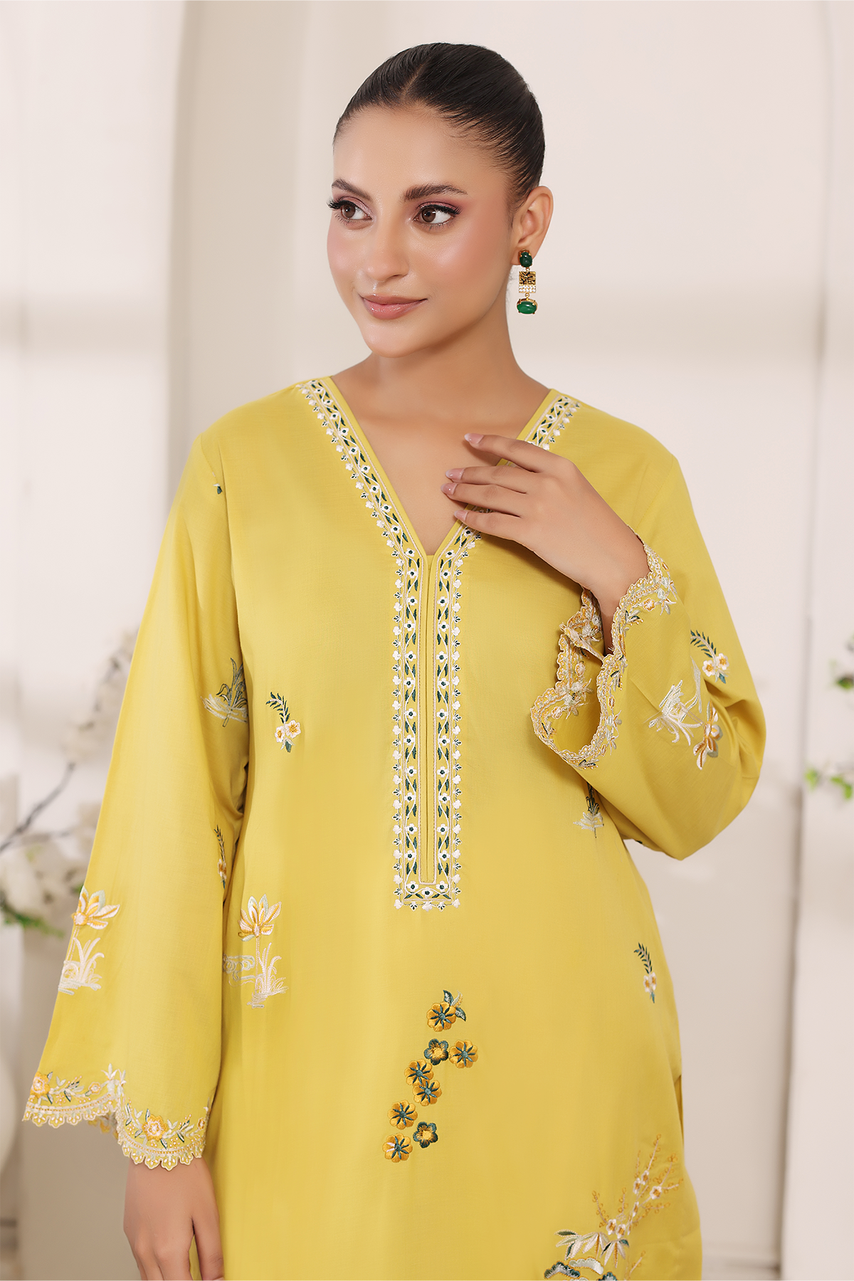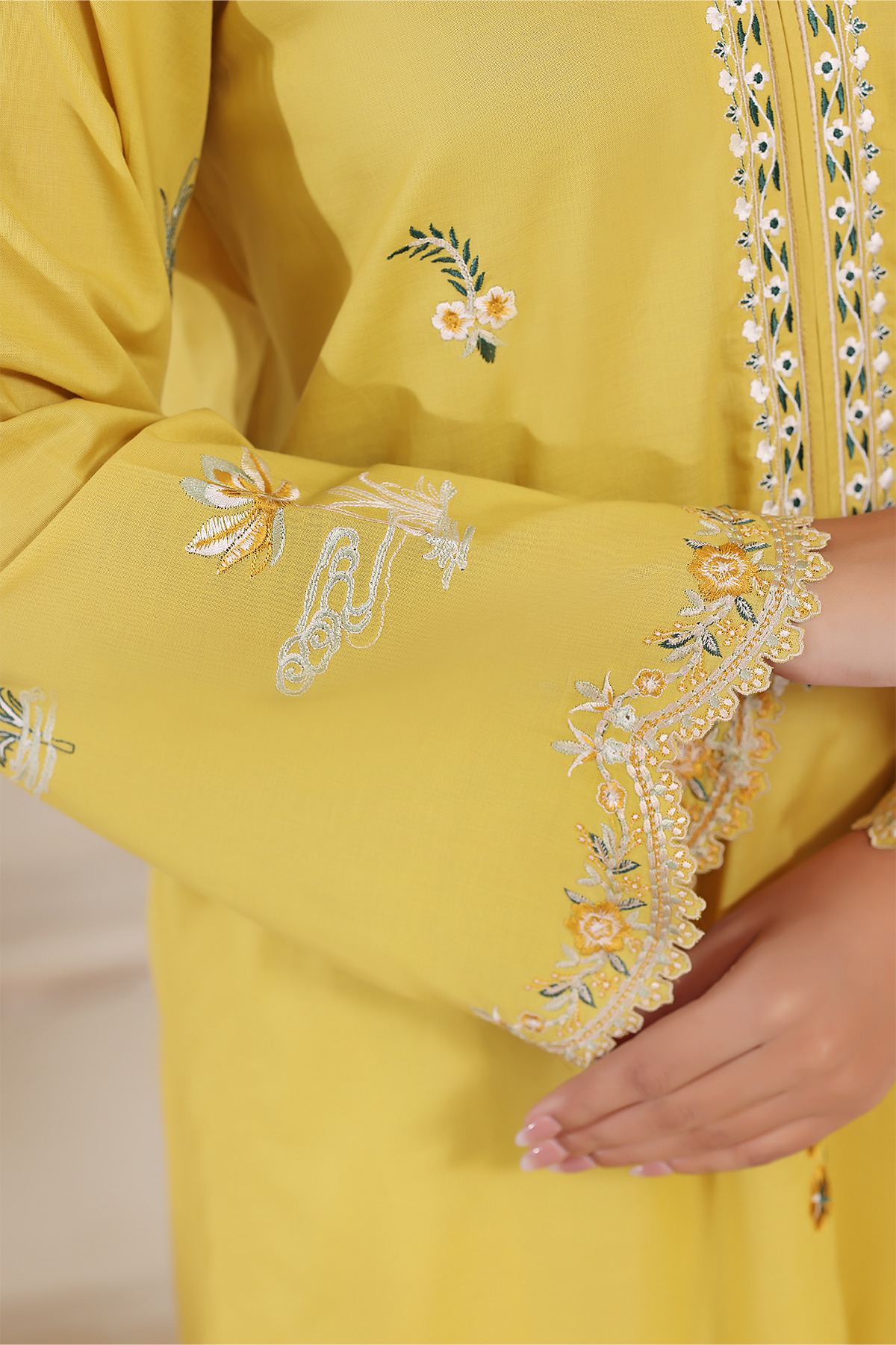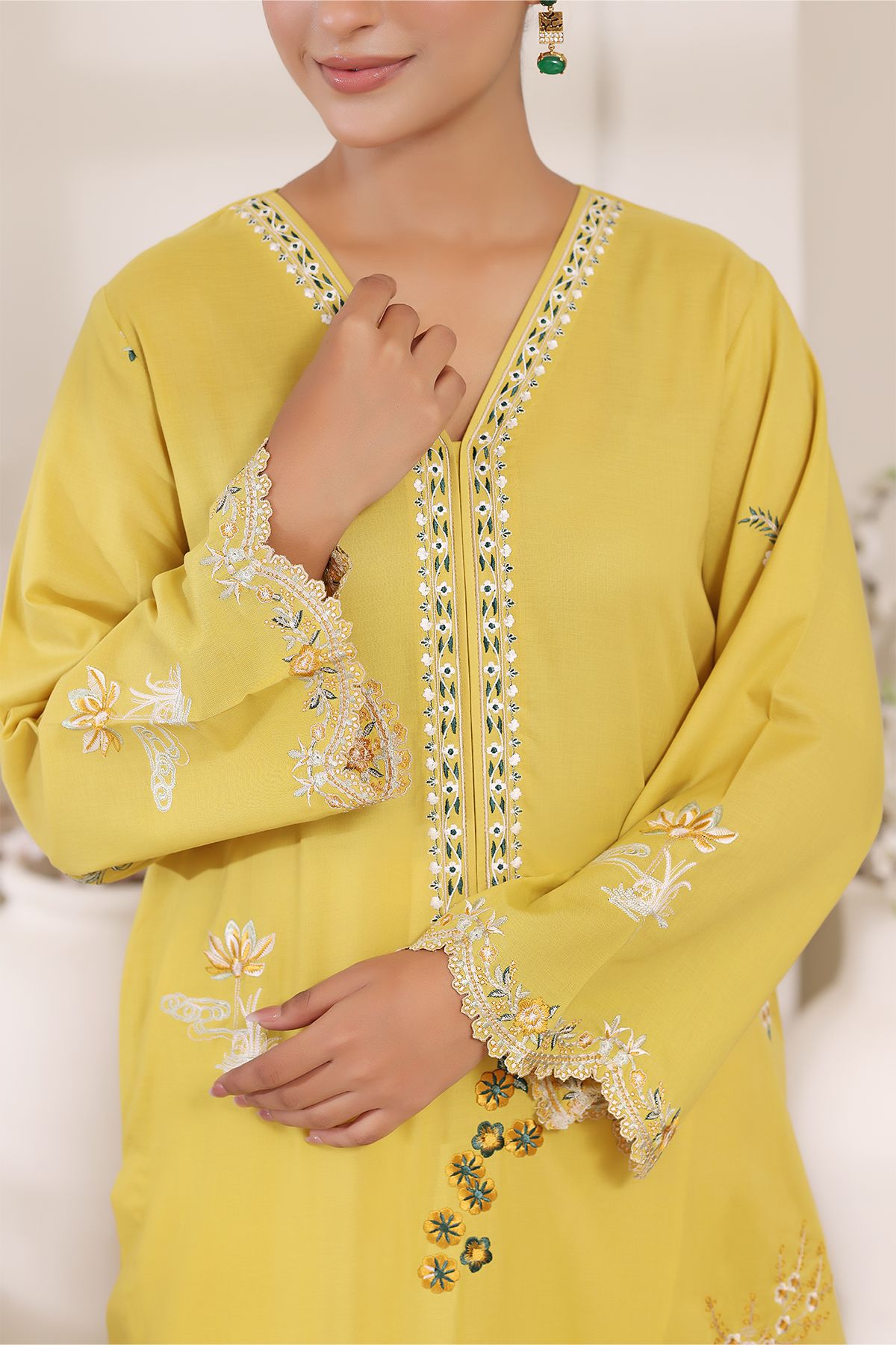 A radiant burst of summer in soft lawn, Mireya captures sunshine through its golden hue. Embellished with delicate embroidery, this design brings effortless elegance and warmth to your everyday style.